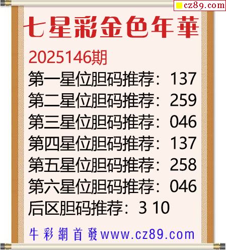 七星彩2025年146期金色年华胆码图谜